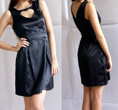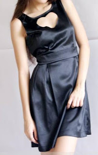 Cut Out Heart Insert Satin V Back Dress